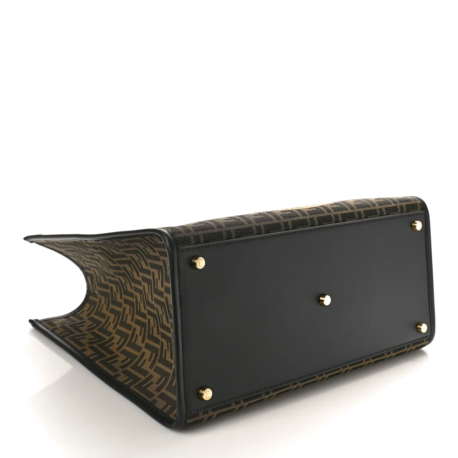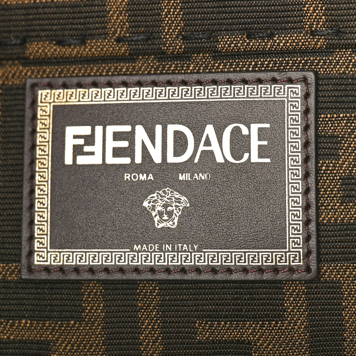 This is an authentic FENDI X VERSACE Fabric Jacquard Calfskin Plexiglass Fendace FF Medusa Studded Large Fendi Sunshine Shopper Tote in Marrone and Fuxia. This stylish shopping tote is crafted of Fendi FF print canvas with black leather trim, bold decorative embellished logo and stitched detailing. It features resin tortoiseshell top handles and gold hardware. The top opens to a spacious matching fabric interior.