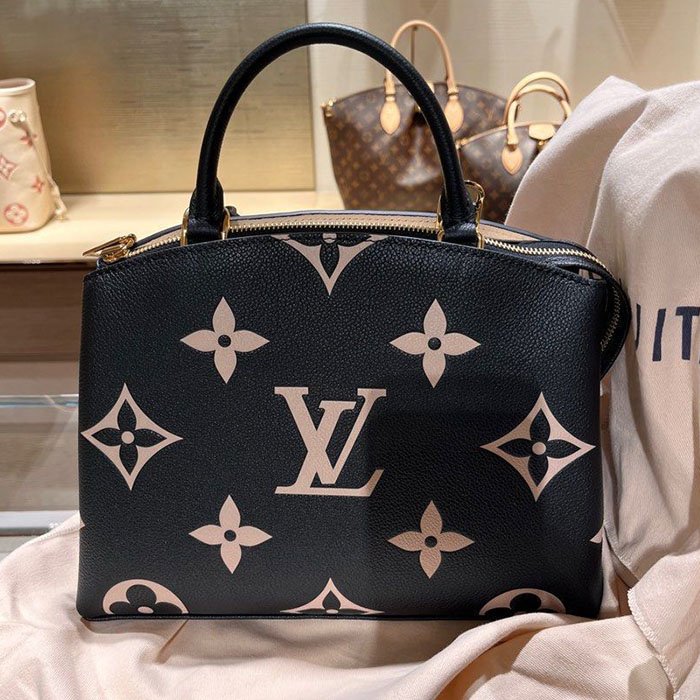 Elevate your style with this elegant Louis Vuitton handbag, crafted from premium monogram canvas in a timeless black and white palette. Featuring the iconic LV logo and floral motifs, this structured bag offers both luxury and practicality. Its smooth leather handles, gold-tone hardware, and attached branded tag exude sophistication. The spacious interior ensures its perfect for daily use or special occasions, seamlessly blending fashion with function.