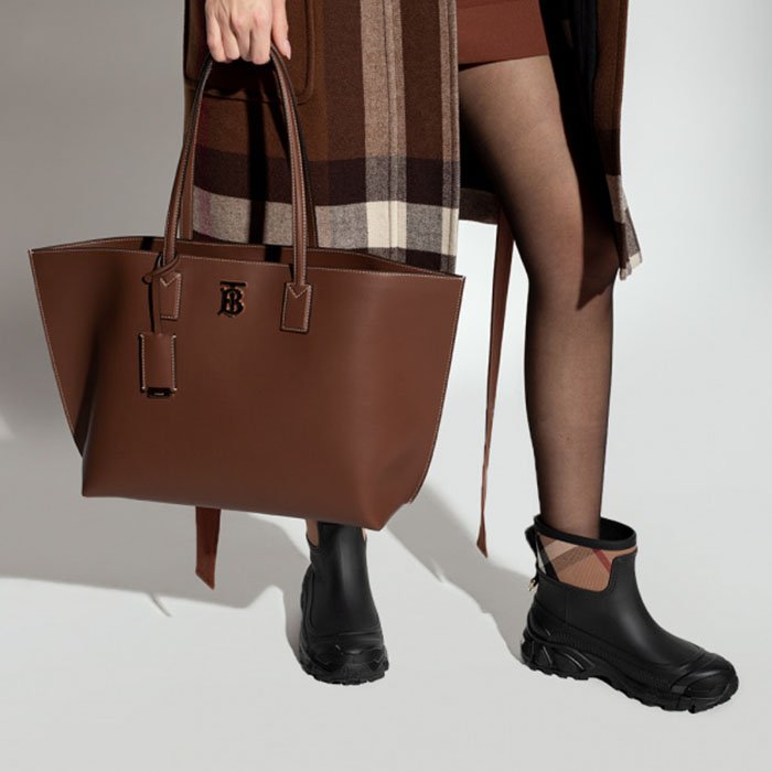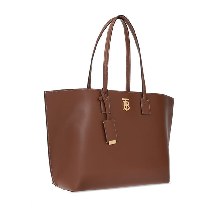 Brown shopper bag from Burberry. Crafted from calf leather, this design secures with a lobster clasp fastening and features two half-round handles,