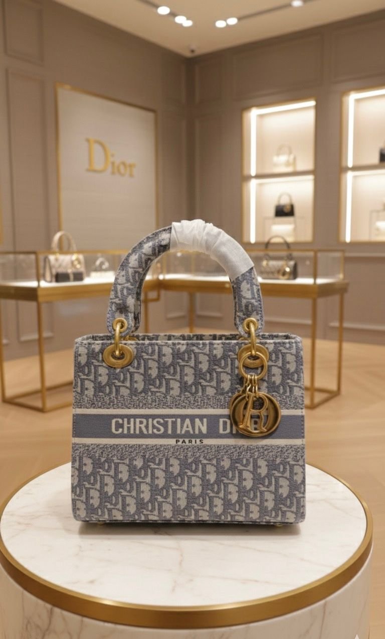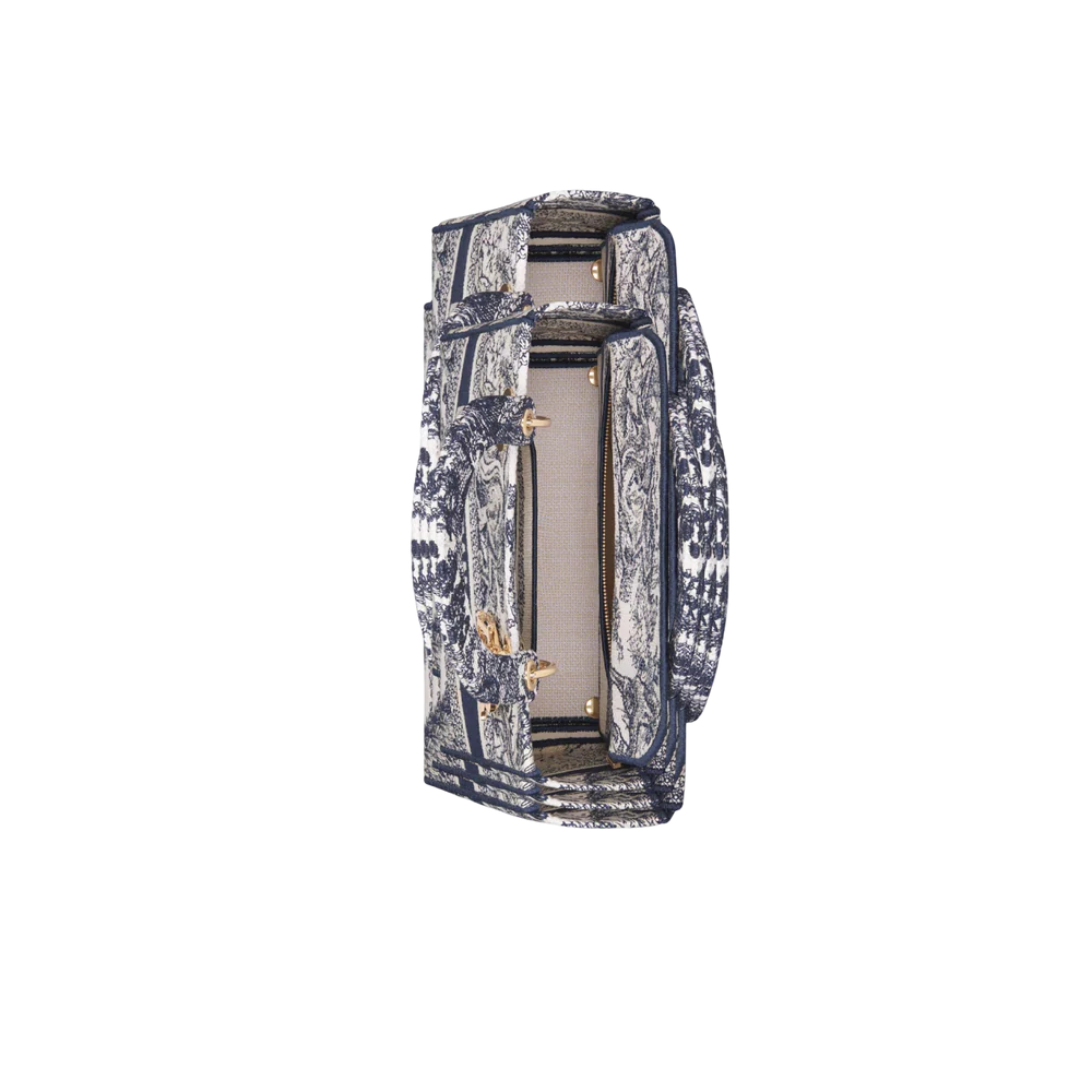 The Lady D-Lite bag combines classic elegance with House modernity. The style is fully embroidered with the blue Toile de Jouy motif.