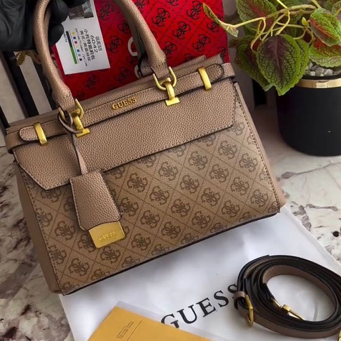 Hardware: Gold-tone metallic accents and GUESS branding