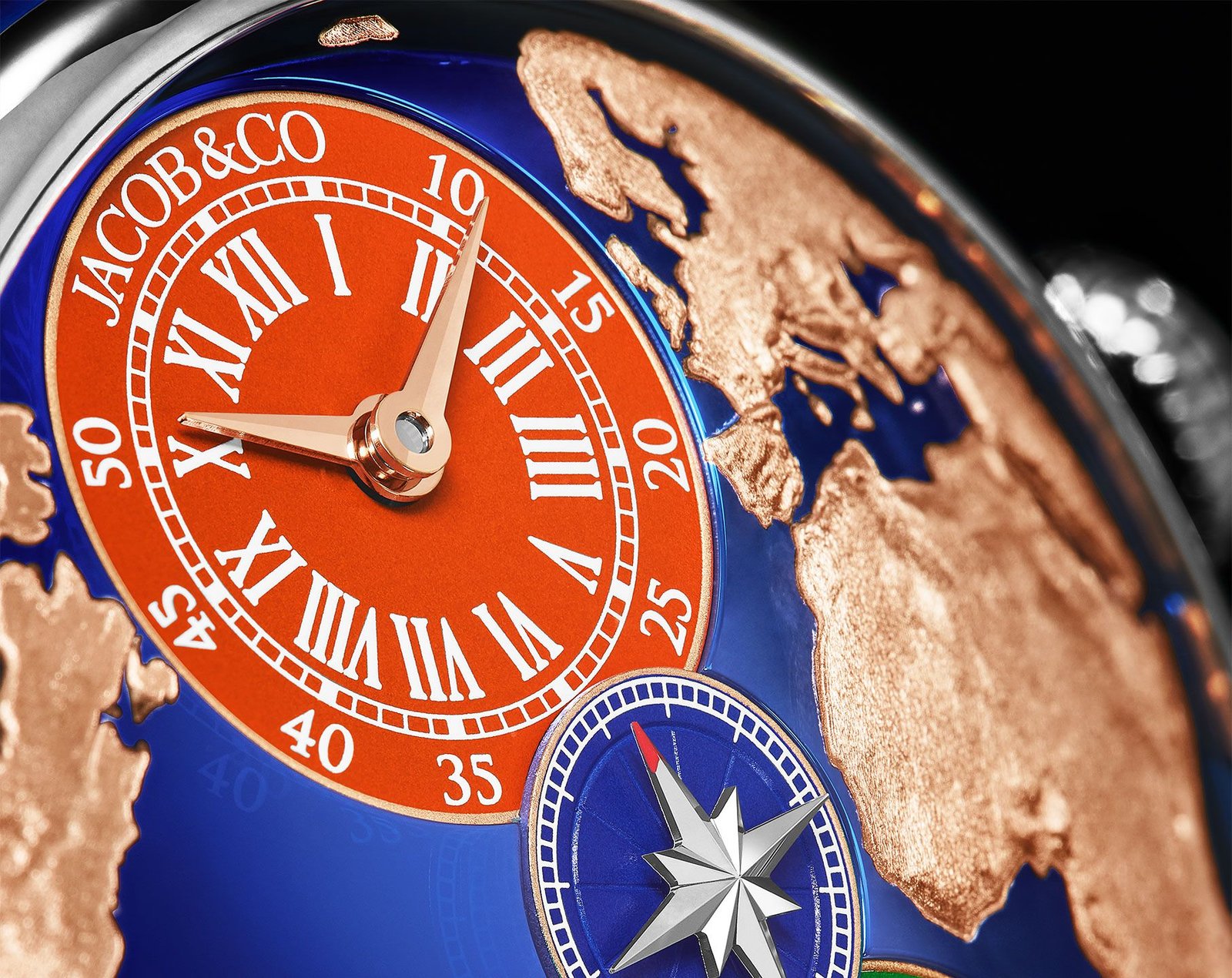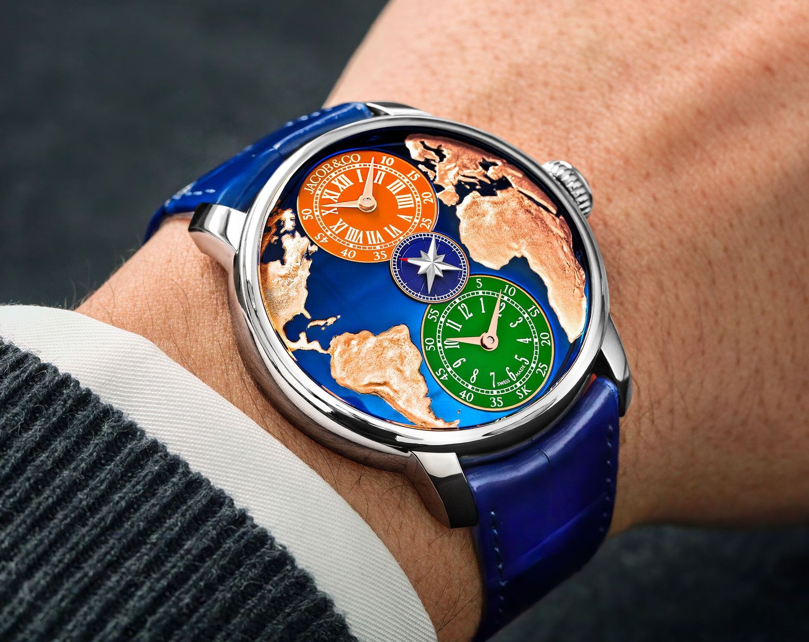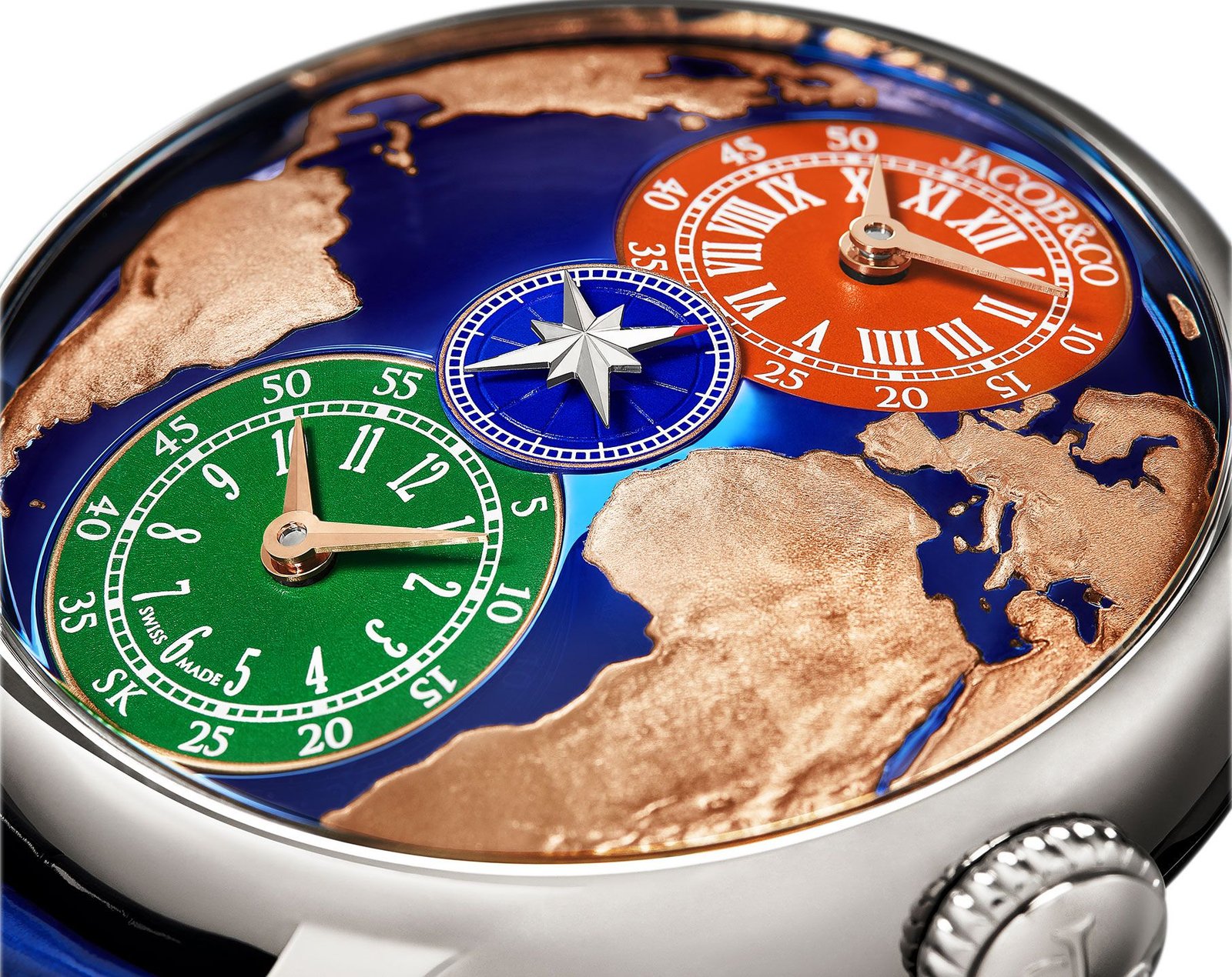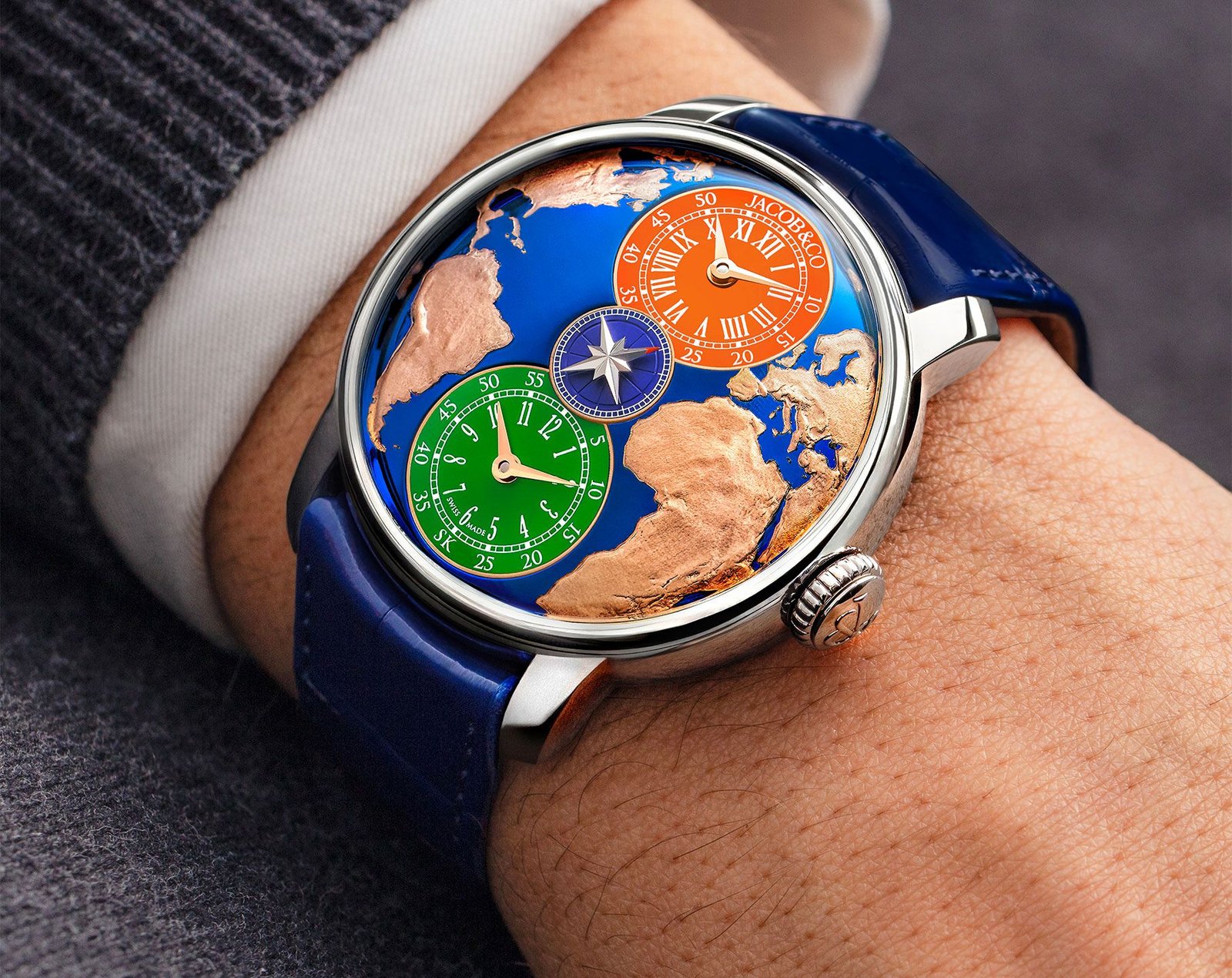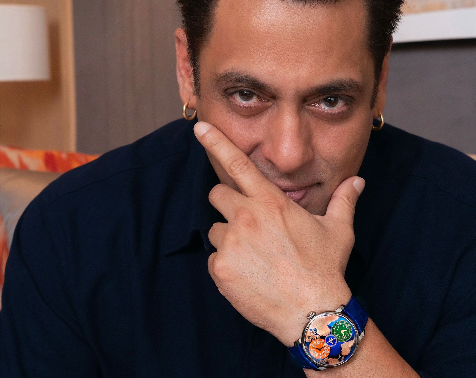The Jacob & Co. The World Is Yours Dual Time Zone Salman Khan is a timepiece rich in symbolism and exquisite craftsmanship. Inspired by a vintage heirloom watch gifted to Jacob Arabo by his father, this model is a fusion of heritage and modern luxury. Encased in a 43mm stainless steel, its design is a bold yet elegant interpretation of the classic dual time zone complication. The dial is a visual masterpiece, featuring two globe-shaped sub-dials in saffron and green, paying tribute to Indias national colours. These distinct hues not only enhance legibility but also add a meaningful cultural touch. The finely detailed map engraving on the dial enhances the timepieces depth, while sleek hands and indices maintain a refined aesthetic. The watchs case structure and proportions exude Jacob & Co.s signature opulence, with polished surfaces complementing the intricate detailing. Designed as a tribute to Salman Khan and his father, Salim Khan, this limited edition creation is a striking blend of cinematic legacy and horological excellence.The Jacob & Co. The World Is Yours Dual Time Zone Salman Khan is a timepiece rich in symbolism and exquisite craftsmanship. Inspired by a vintage heirloom watch gifted to Jacob Arabo by his father, this model is a fusion of heritage and modern luxury. Encased in a 43mm stainless steel, its design is a bold yet elegant interpretation of the classic dual time zone complication. The dial is a visual masterpiece, featuring two globe-shaped sub-dials in saffron and green, paying tribute to Indias national colours. These distinct hues not only enhance legibility but also add a meaningful cultural touch. The finely detailed map engraving on the dial enhances the timepieces depth, while sleek hands and indices maintain a refined aesthetic. The watchs case structure and proportions exude Jacob & Co.s signature opulence, with polished surfaces complementing the intricate detailing. Designed as a tribute to Salman Khan and his father, Salim Khan, this limited edition creation is a striking blend of cinematic legacy and horological excellence.
