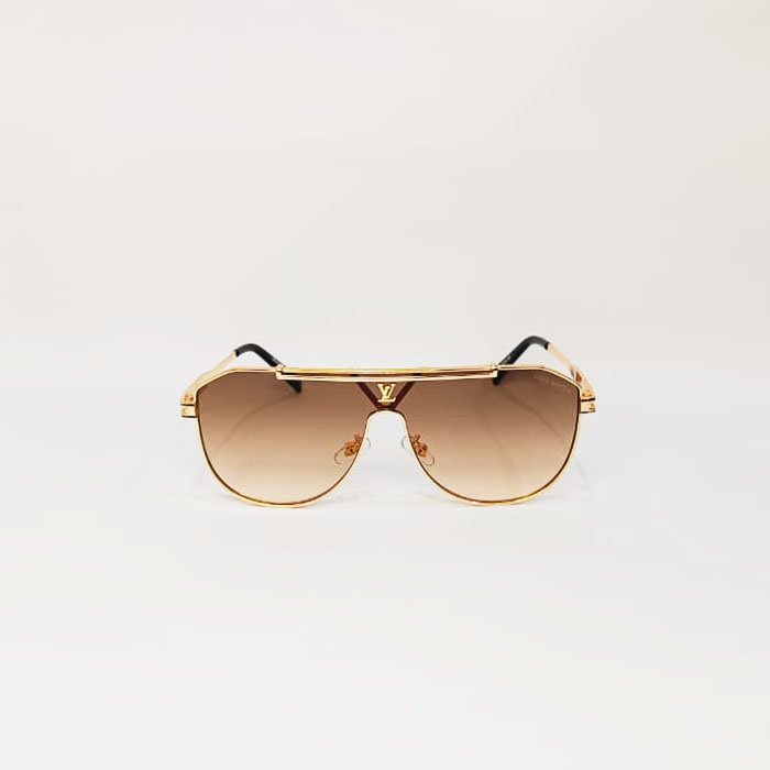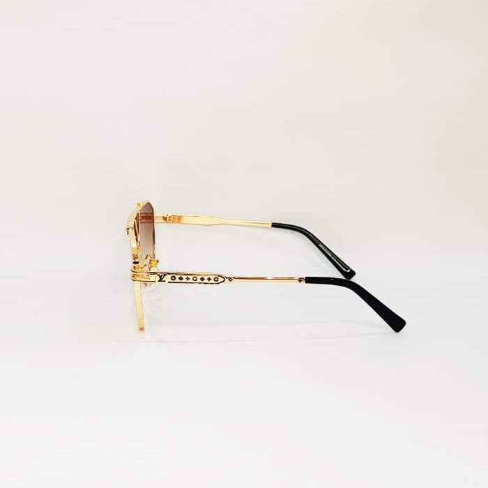 These are Louis Vuitton pilot-style or aviator sunglasses with gold-tone metal frames and gradient brown lenses.