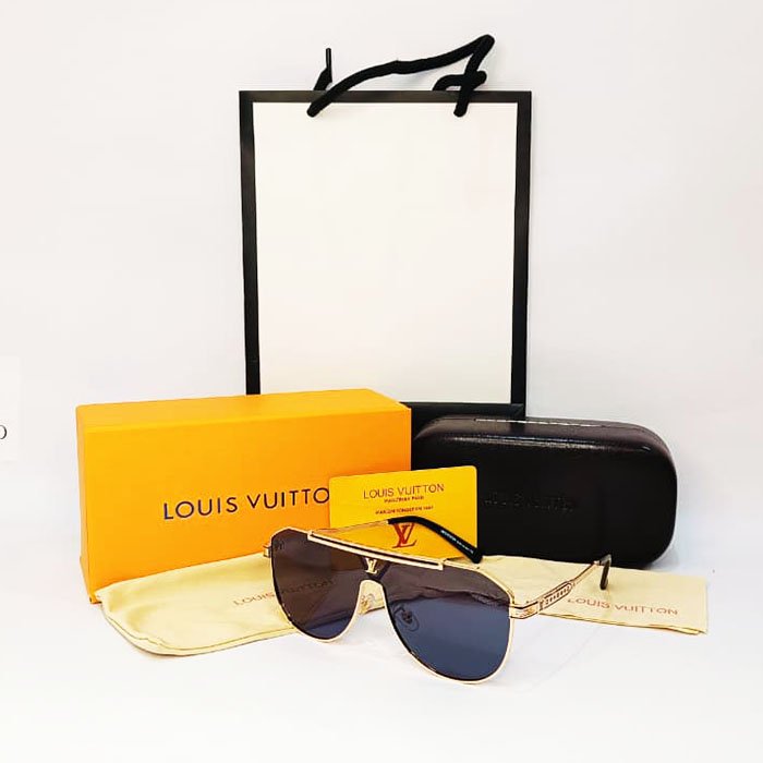 The set in the image includes the sunglasses, a hard case, a soft pouch, and a certificate/authenticity card. Please note that items from certain third-party retailers with this model number can be offered at prices significantly lower than official Louis Vuitton products, which typically retail for much more.