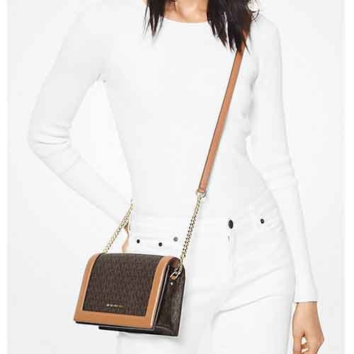 MICHAEL KORS Jet Set Large Logo and Leather Crossbody Bag