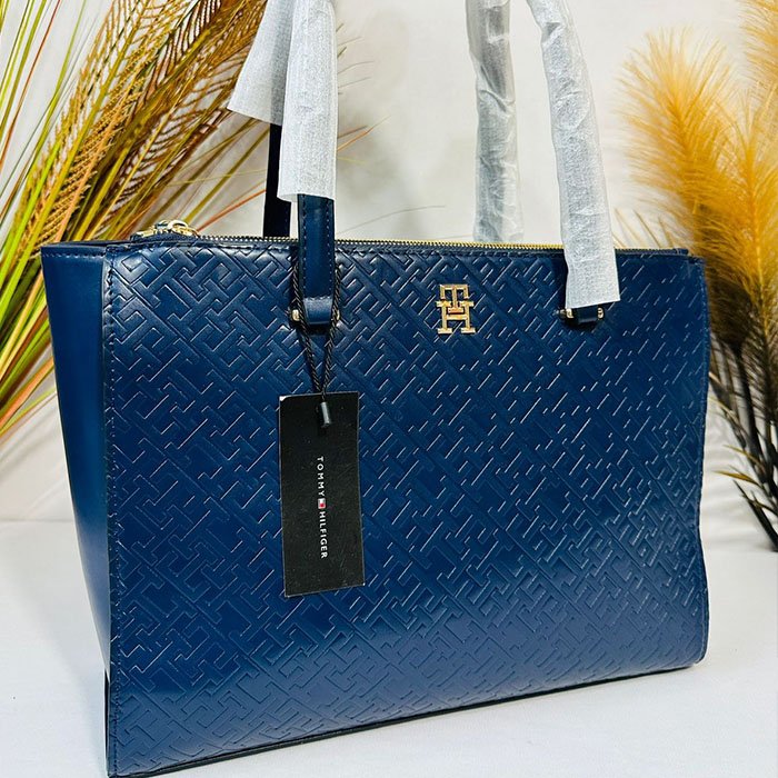 TOMMY HILFIGER Space Textured Iconic Medium Tote-75% TOMMY HILFIGER Space Blue Textured Iconic Medium Tote