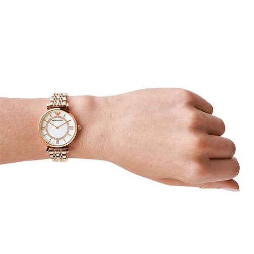 Emporio Armani Women Two Hand Rose Gold Tone Steel Watch