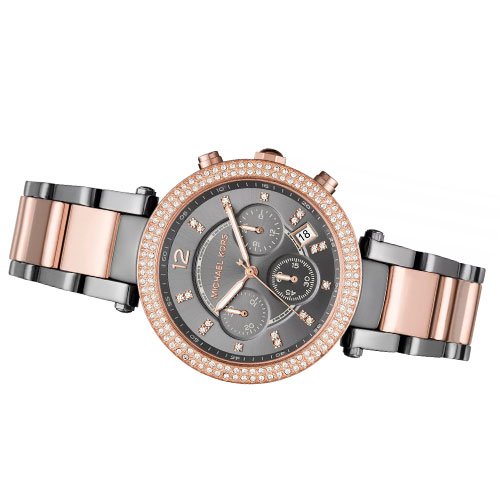 Michael Kors MK6440 Women Parker Two-Tone Rose Gold Gunmetal Chronograph Watch