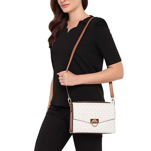MICHAEL Vanilla & Acorn Large Hendrix Cross Body Bag