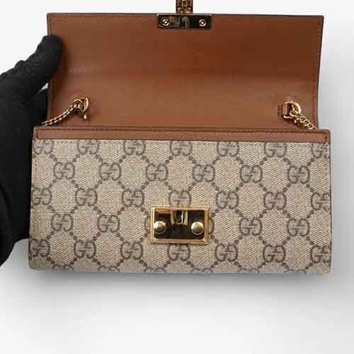 Gucci Padlock Wallet On Chain Beige And Ebony GG Supreme Black Coated Canvas