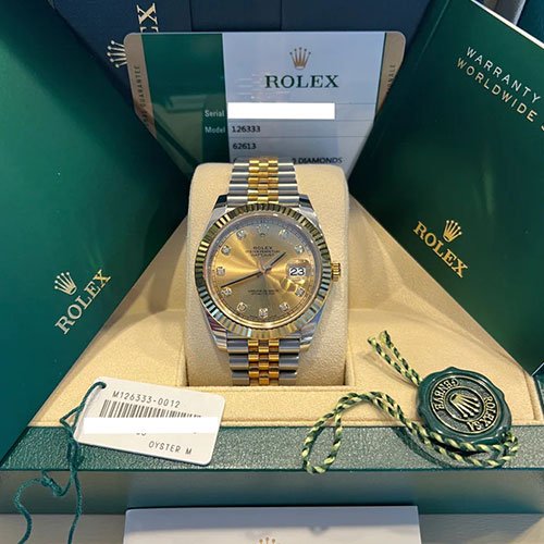 Rolex Datejust 126333 Champagne Diamond Jubilee 41mm Steel and Yellow Gold Mens Watch